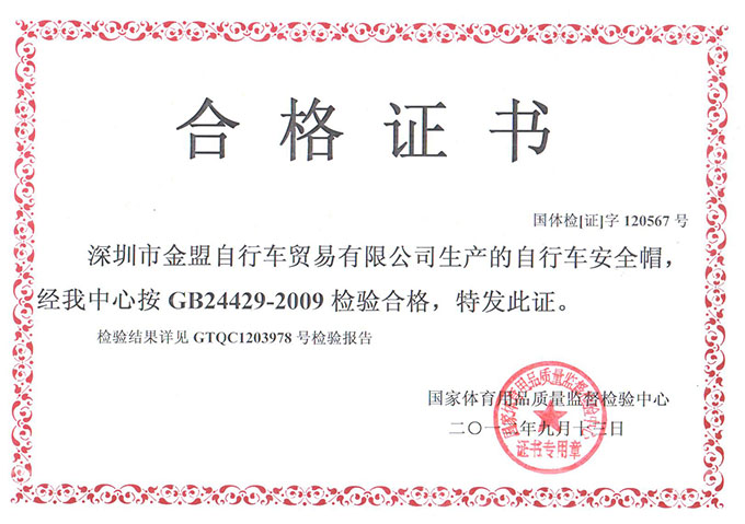 GUB頭盔國(guó)家檢測(cè)合格證書