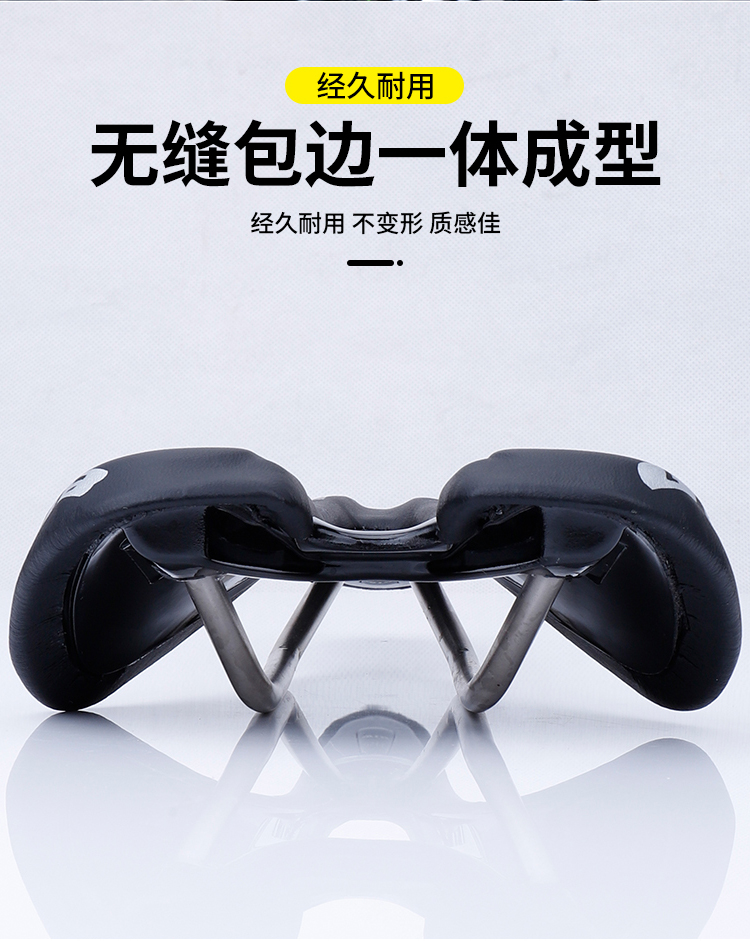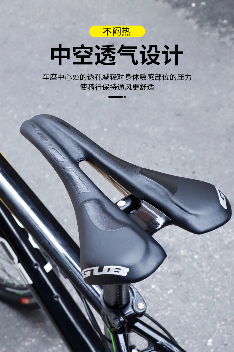 外觀設(shè)計(jì)采用人體工學(xué)原理,耐磨纖皮,中間鏤空設(shè)計(jì),以降低騎行阻力,保證騎行舒適性。
