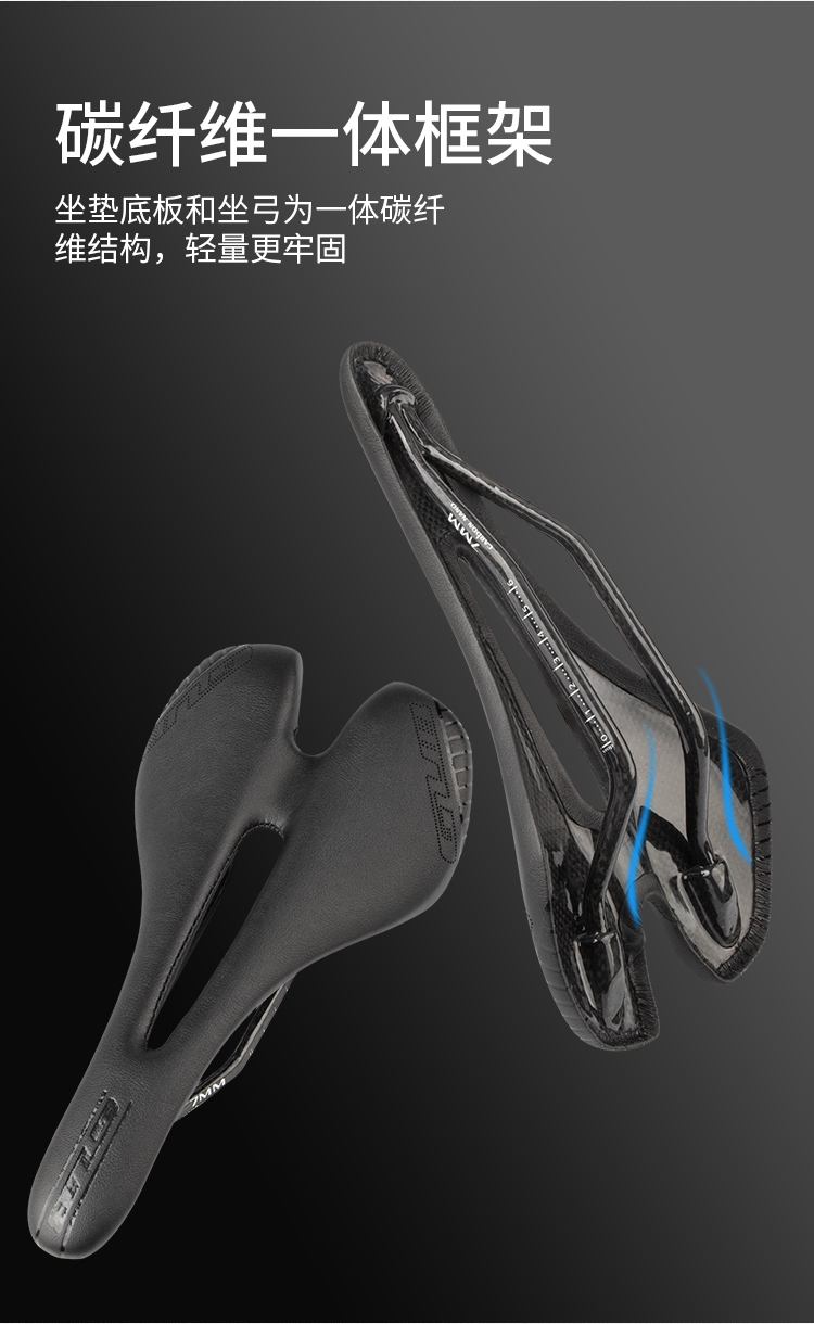 簡介:超纖皮表面,本體做工精細、LOGO鐳刻圓小孔造型、中空設(shè)計全黑色獨特設(shè)計、鏤空的開槽減輕中間部分壓力、提供有趣的空氣通風作用。坐墊弓為橢圓形碳弓,建議使用上下夾具與座弓表面形狀相似的座管。