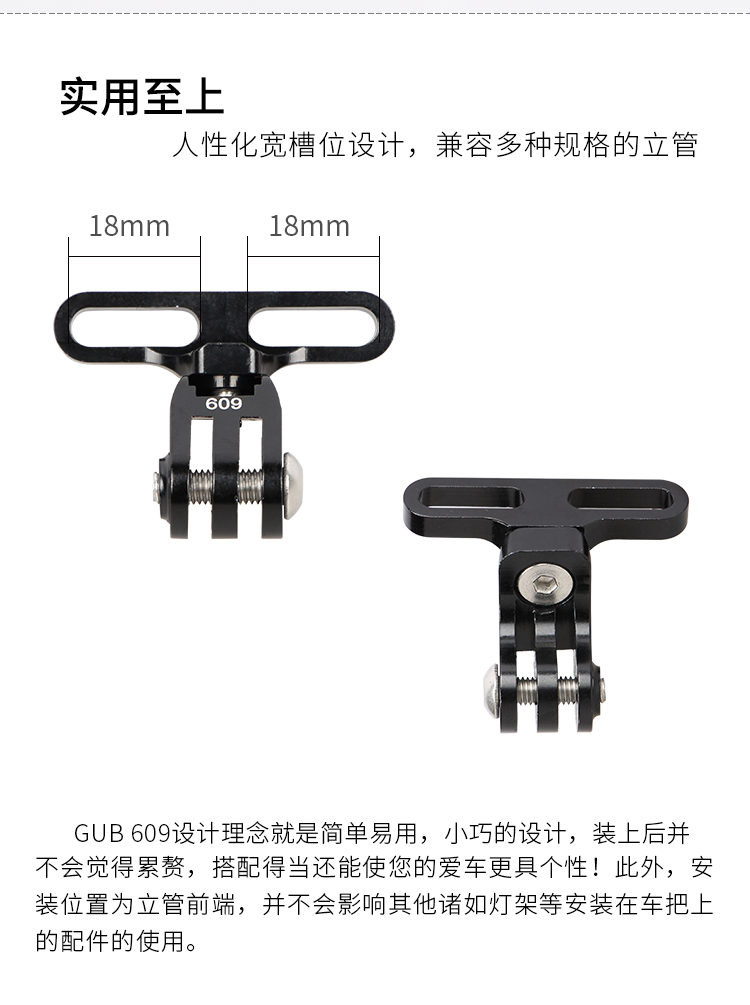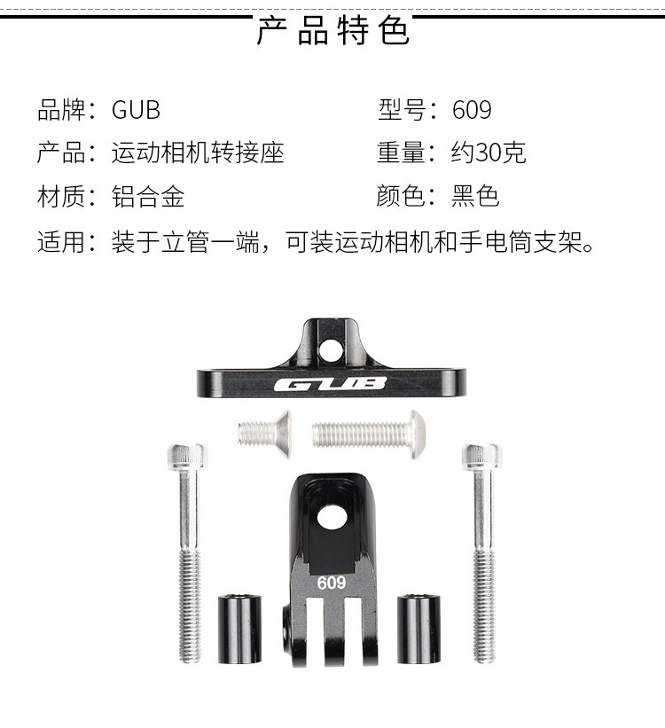 產(chǎn)品:GUB 609 相機(jī)架 材質(zhì):鋁合金 重量:約33克 顏色:黑色 統(tǒng)一零售價(jià):58元