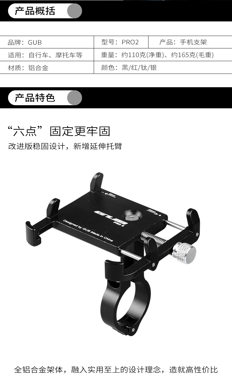 名稱:GUB PRO2 鋁合金手機(jī)支架