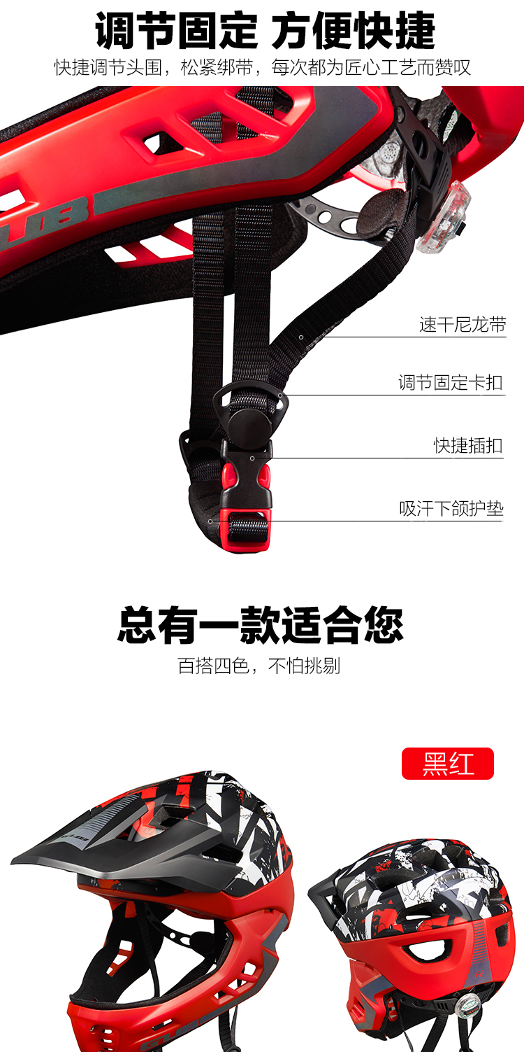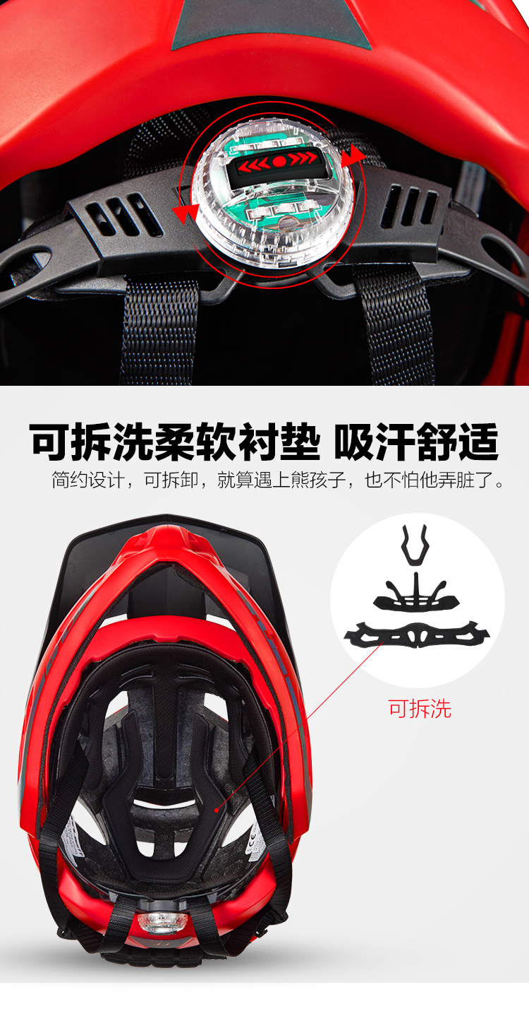 特色:全盔半盔自由切換,加長帽檐貼心保護(hù)孩子的眼睛,酷炫反光標(biāo)涂裝讓騎行更酷更有樂趣,同時頭圍調(diào)節(jié)系統(tǒng)自帶的尾燈起到警示作用,讓孩子的夜騎更安全。