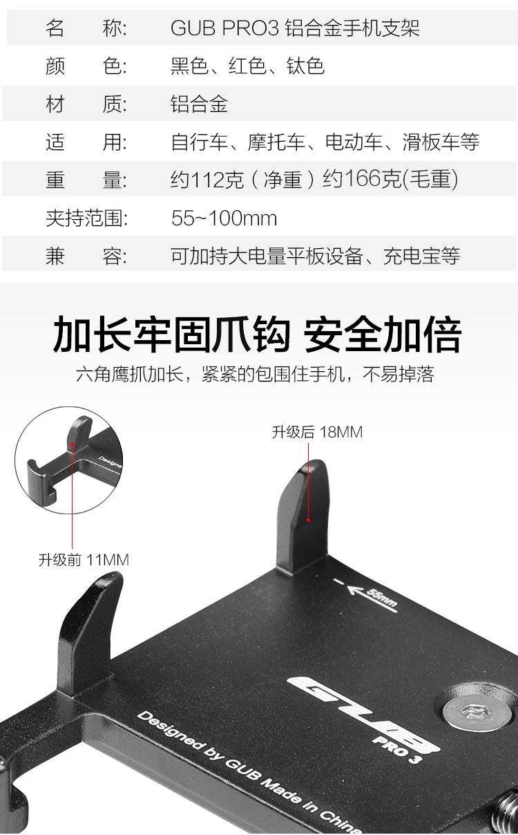 名稱:GUB PRO3 鋁合金手機(jī)支架