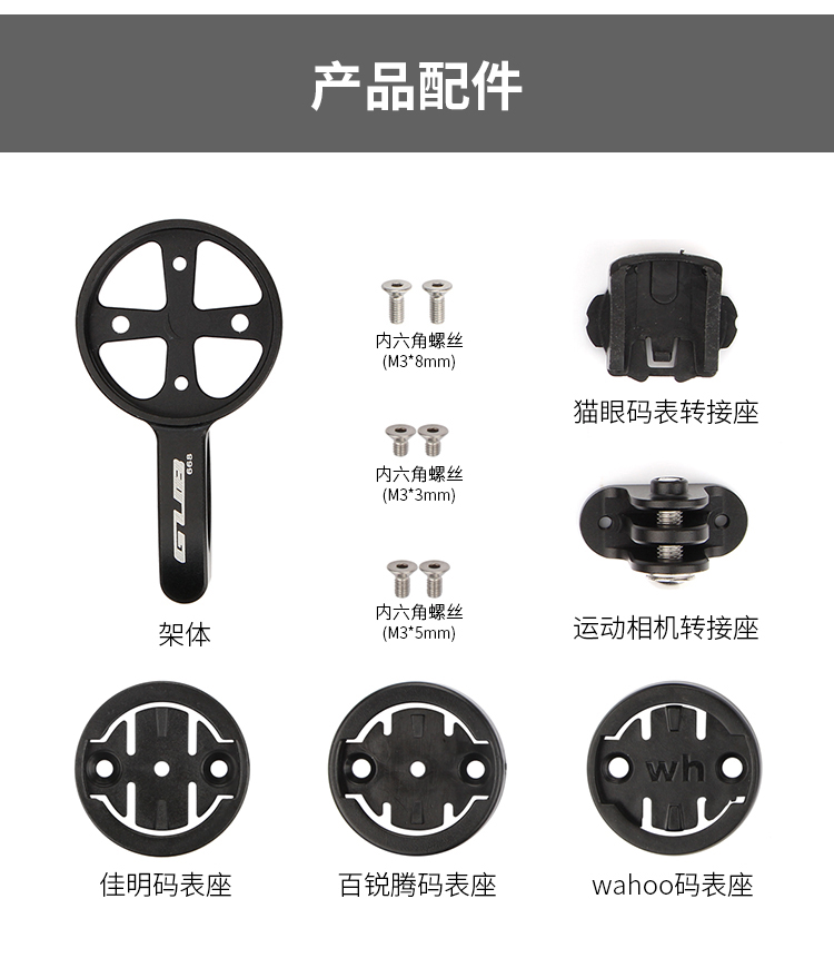 配置:配運動相機轉接座,wahoo、佳明、百銳騰和貓眼碼表接座