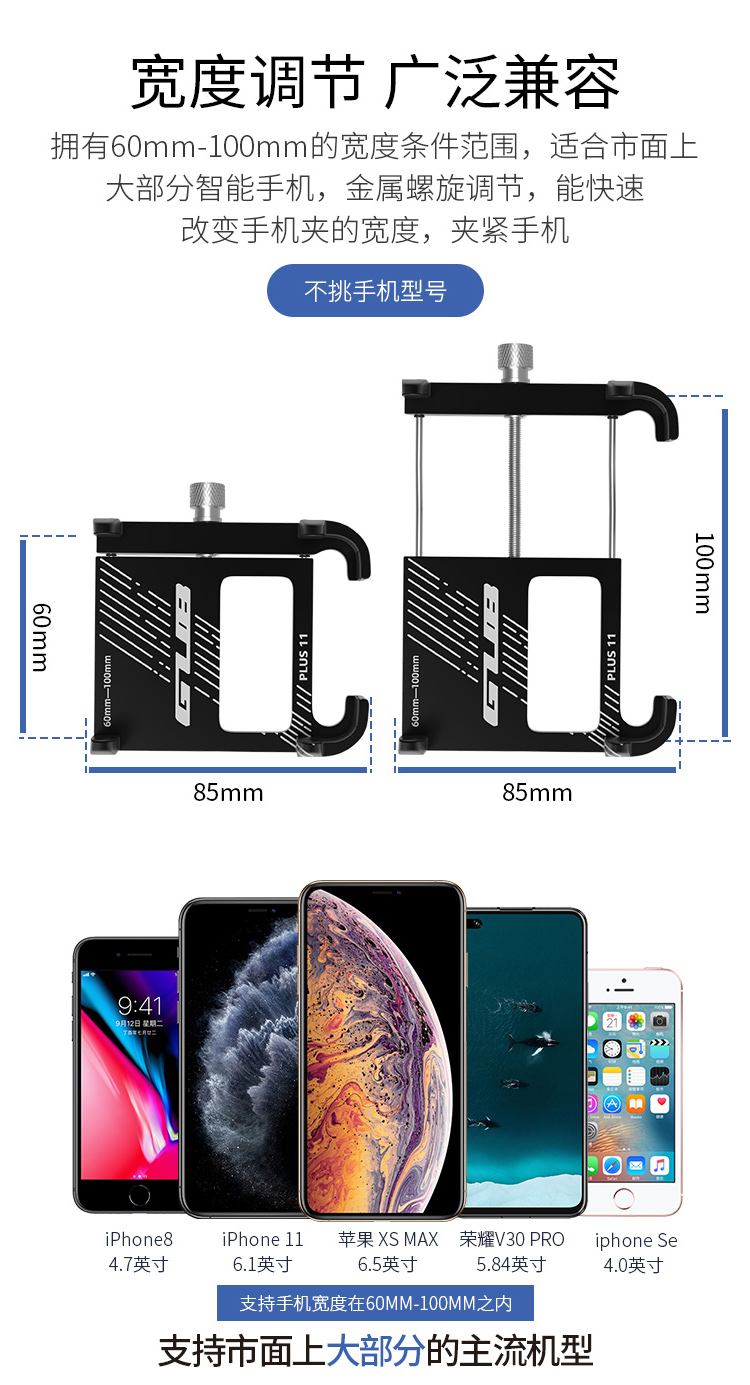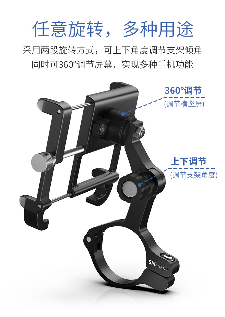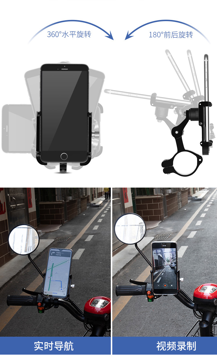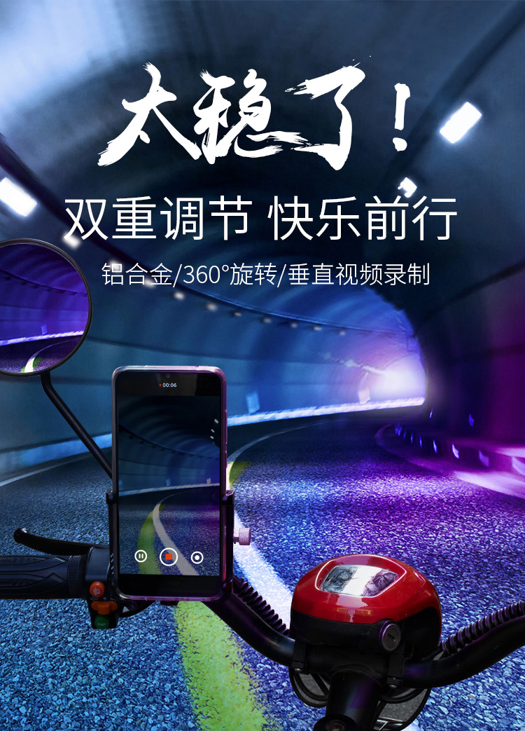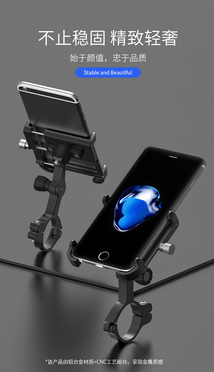 特點(diǎn):全鋁合金架體,雙重調(diào)節(jié),支持前后角度及平面360度調(diào)節(jié),支持手機(jī)架垂直固定,讓手機(jī)秒變運(yùn)動(dòng)相機(jī),記錄一路精彩!高兼容性不挑手機(jī)型號(hào),自行車(chē)、電動(dòng)車(chē)等都可使用!