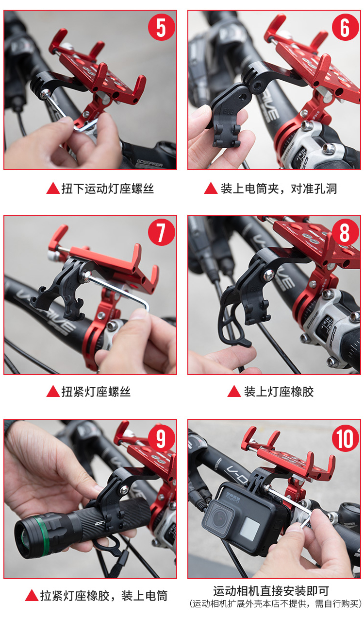 特點(diǎn):鋁合金架體,高兼容性不挑手機(jī)型號,自行車、電動車等都可使用。標(biāo)配電筒支架配件,豐富擴(kuò)展性能,讓你騎行無憂!