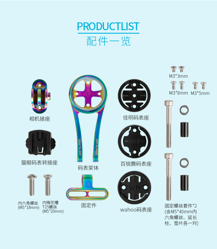 配置:配運動相機轉接座,wahoo、佳明、百銳騰和貓眼碼表接座