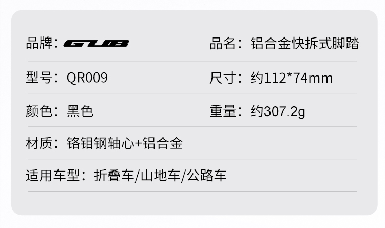 產(chǎn)品:GUB QR009 鋁合金快拆式腳踏