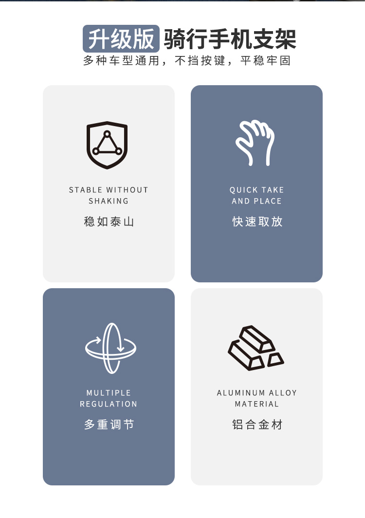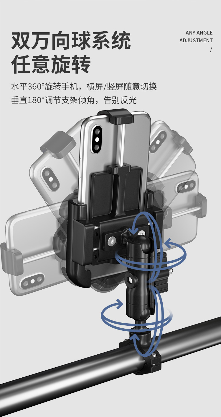 特點(diǎn):鋁合金架體,高兼容性不挑手機(jī)型號,摩托車、電動車等都可使用,四面環(huán)繞固定,夾手機(jī)更牢固,快速取放省時(shí)省力,雙萬向球旋轉(zhuǎn)系統(tǒng),滿足多場景使用需求。