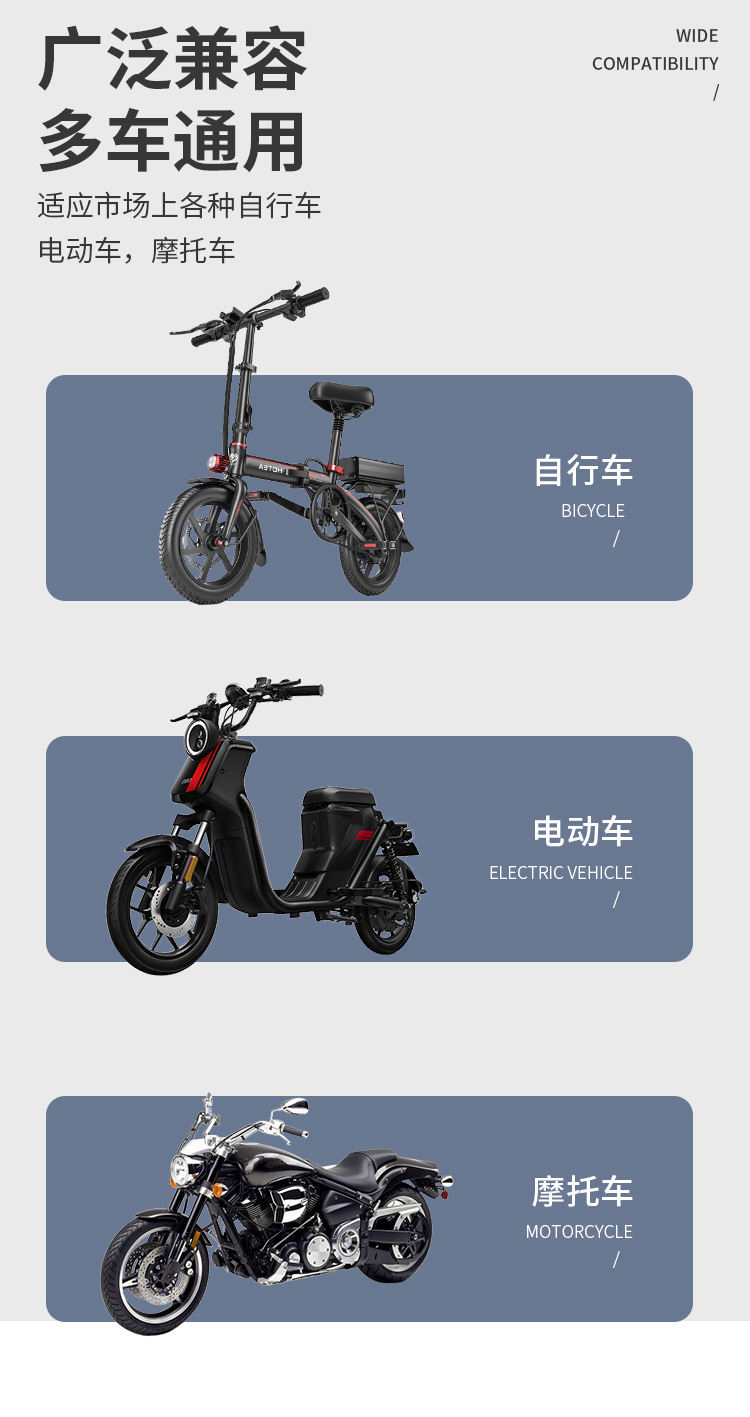 適用:摩托車/電動車/自行車等