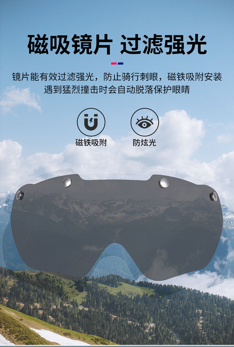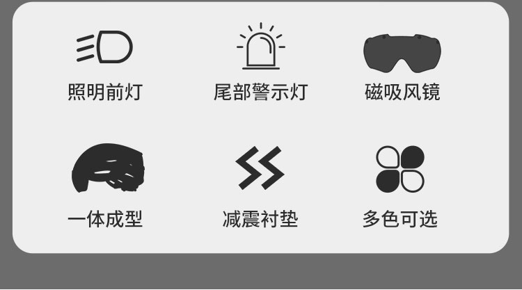 特點(diǎn):免安裝磁鐵吸附風(fēng)鏡設(shè)計,標(biāo)配前燈及后尾燈,做工精致,優(yōu)良品質(zhì)!