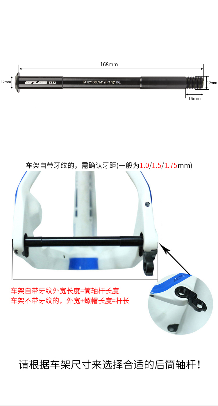 說明:請(qǐng)根據(jù)前叉和車架尺寸選擇合適的桶軸桿!