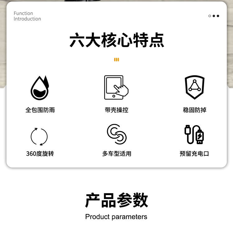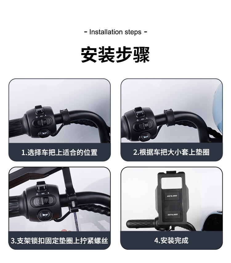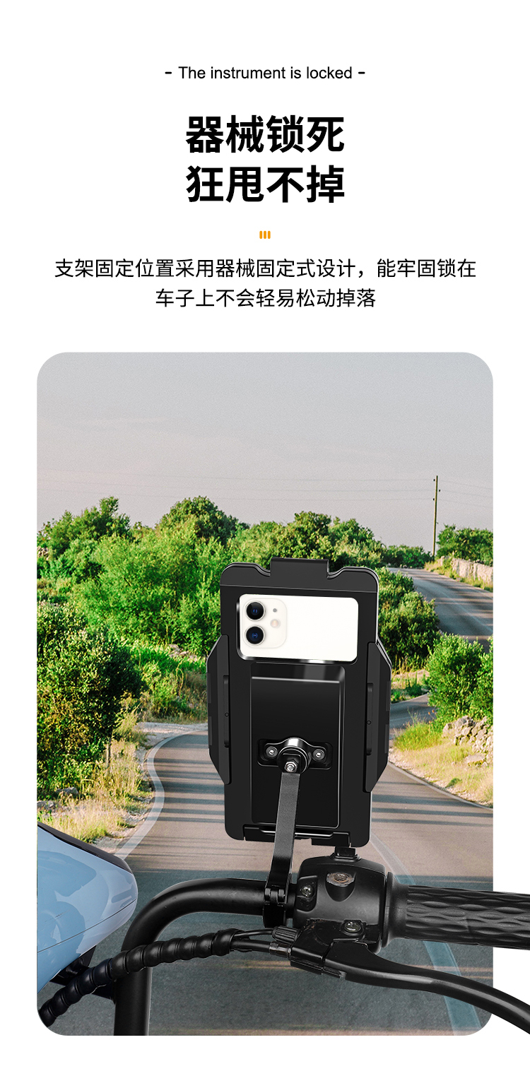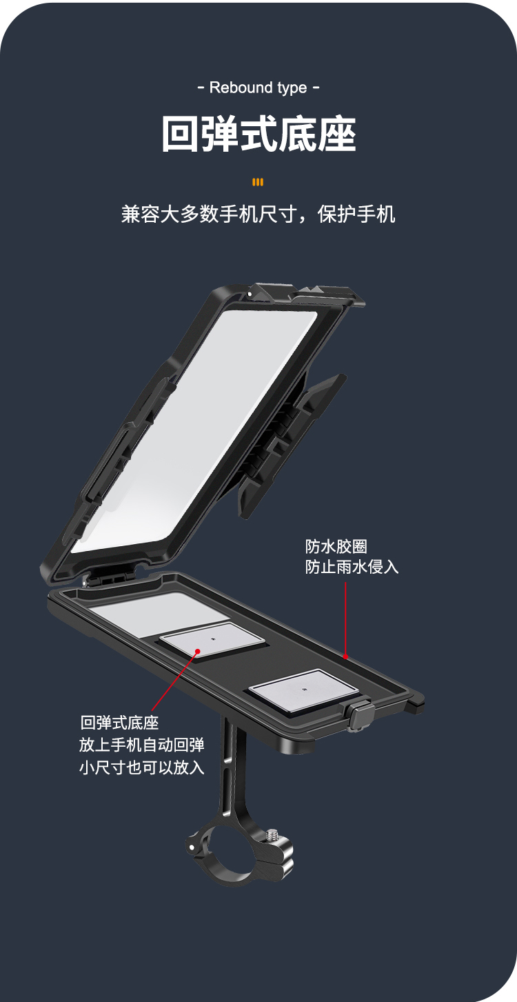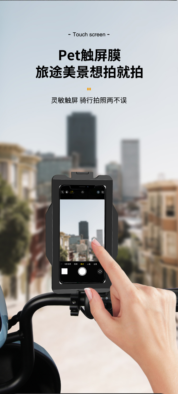 特點(diǎn):鋁合金支撐架,全封閉手機(jī)盒,防雨無(wú)憂,高兼容性不挑手機(jī)型號(hào),摩托車(chē)、電動(dòng)車(chē)等都可使用,滿足多場(chǎng)景使用需求。