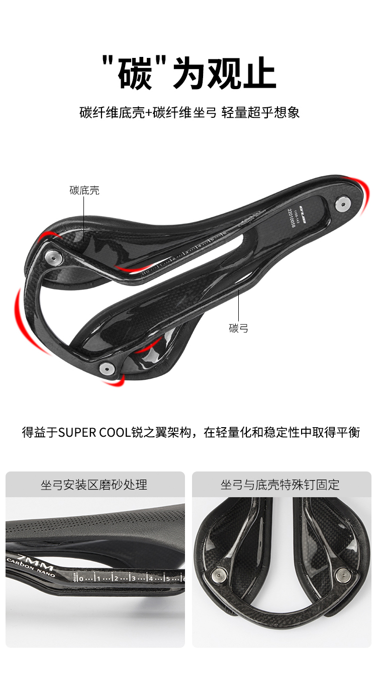 特色:Super Cool架構(gòu),外觀拉風(fēng),超纖皮表面耐磨有質(zhì)感,碳纖維底殼+碳弓強(qiáng)度高重量輕,中空設(shè)計(jì),疏風(fēng)排熱