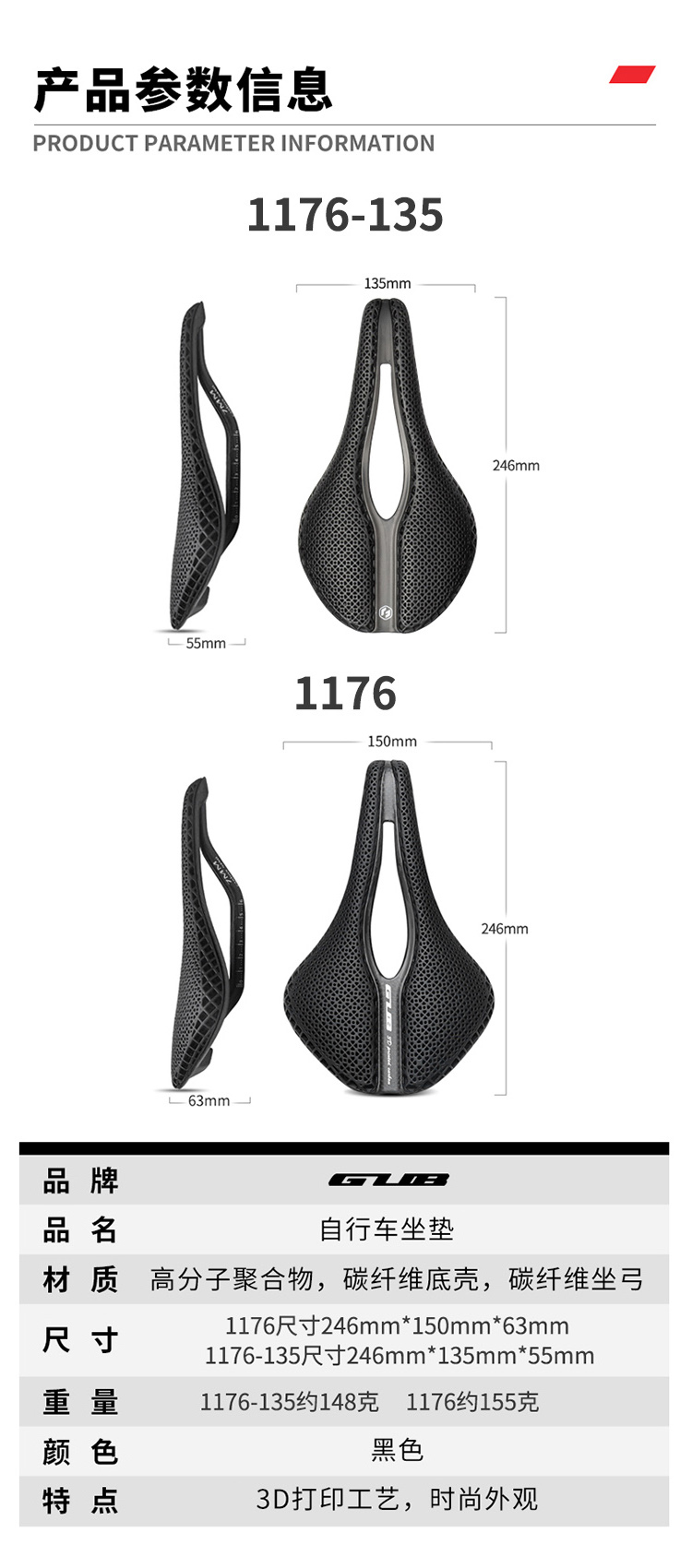 產(chǎn)品:GUB 1176 3D 打印坐墊