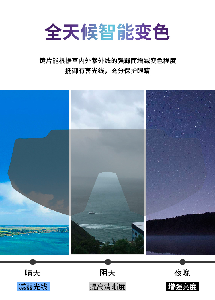 顏色:?jiǎn)『诳蚰_/防霧透明變色片、亮白框腳/防霧透明變色片