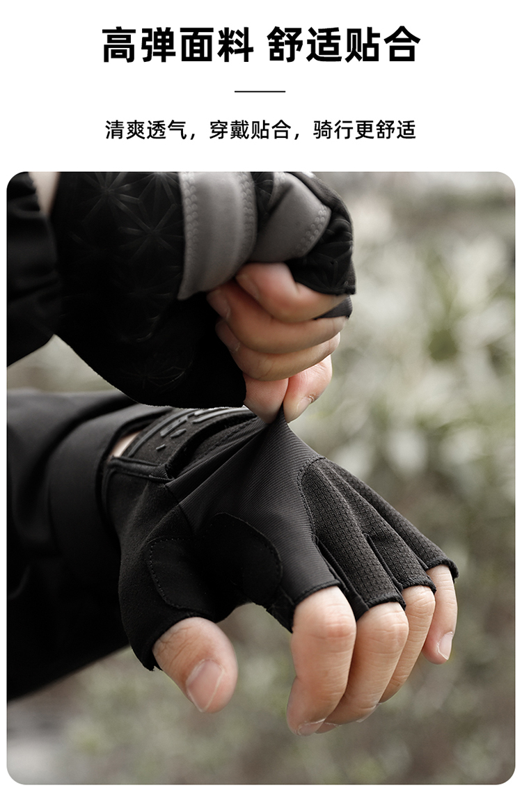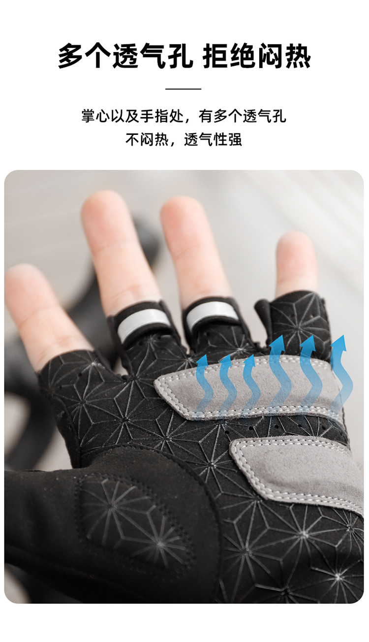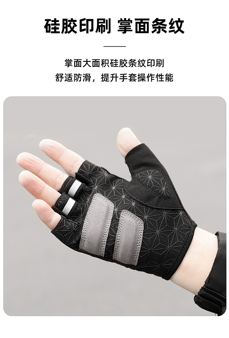 特點:簡約設(shè)計、貼合手掌,手背高彈透氣面料,手掌大面積硅膠印刷條紋,防滑效果好