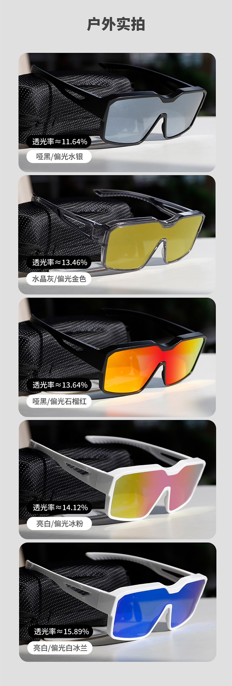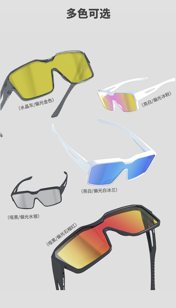 顏色:啞黑/偏光石榴紅、亮白/偏光白冰藍(lán)、啞黑/偏光水銀、亮白/偏光冰粉、水晶灰/偏光金色