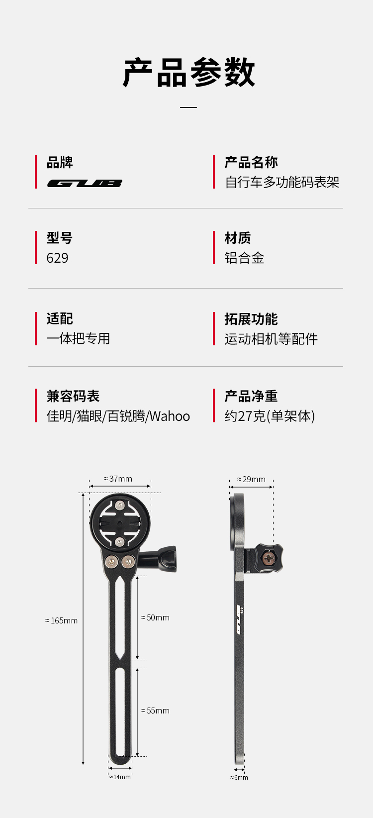 產(chǎn)品:GUB 629 一體把專用鋁合金碼表架