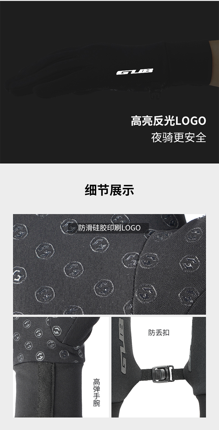 材質(zhì):高彈面料手背、絲絨內(nèi)里、硅膠印刷掌面條紋、拇指食指導電布