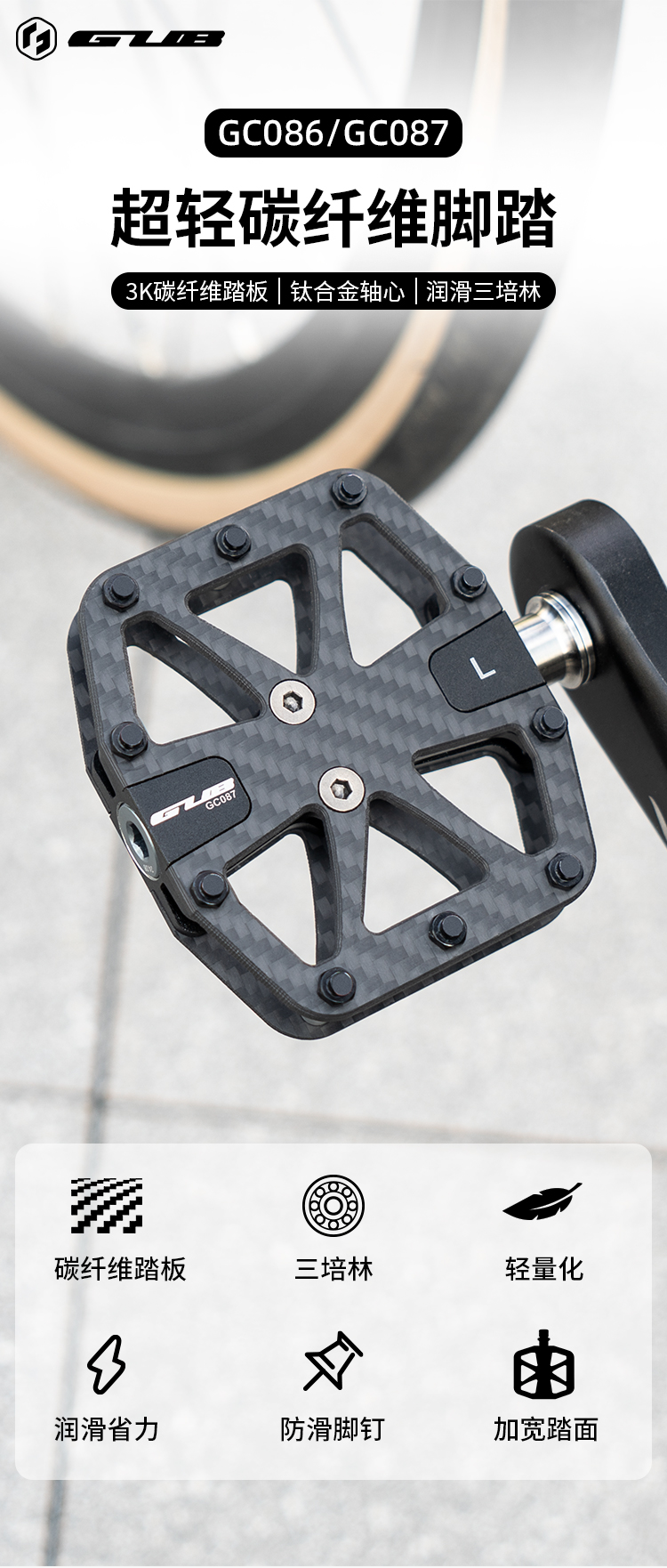 GUB GC086 GC087 碳纖維三培林腳踏