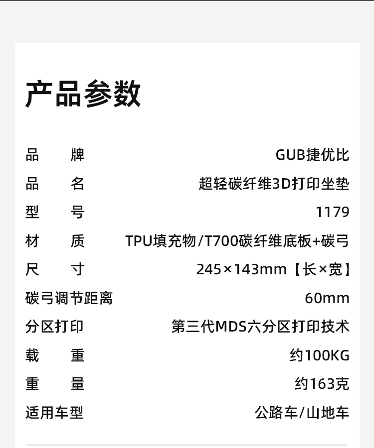 產(chǎn)品:GUB 1179 超輕3D打印坐墊
