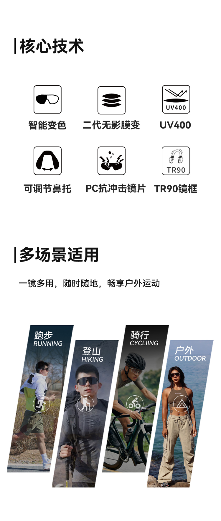 顏色:?jiǎn)“?透明變色片、啞黑/透明變色片、啞卡其/透明變色片