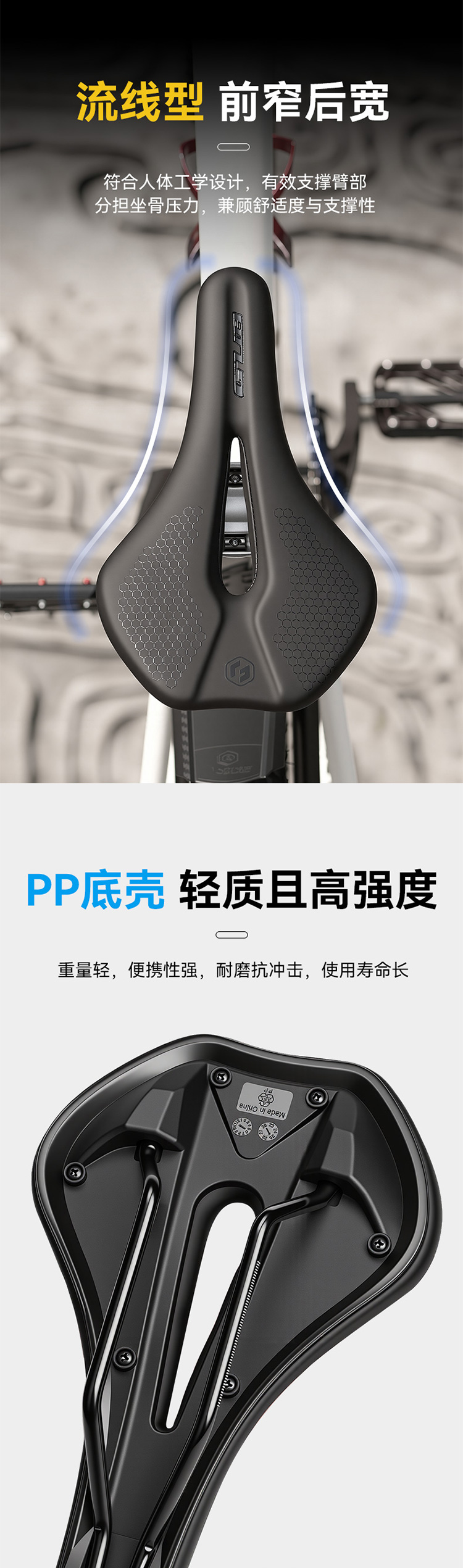 材質(zhì):PP底殼+高回彈聚氨酯發(fā)泡+BED弓